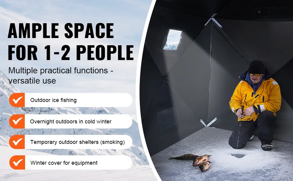 Ihre multifunktionale Nutzung erfüllt Ihre Anforderungen, egal ob beim Eisfischen im Freien, beim Wintercamping, als vorübergehender Unterschlupf im Freien oder zum Abdecken und Schützen der Ausrüstung bei kaltem Wetter.