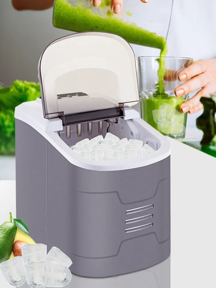 Lebensmittelgeeigneter Eiskorb und Schaufel beseitigen Ihre gesundheitlichen Bedenken. Der Korb kann leicht entfernt werden. Das Gehäuse des Kondensatorlüfters ist mit einem großen Luftstrom ausgestattet, der für eine schnellere Wärmeabfuhr und eine schnellere Eisherstellung sorgt.