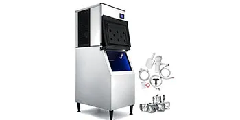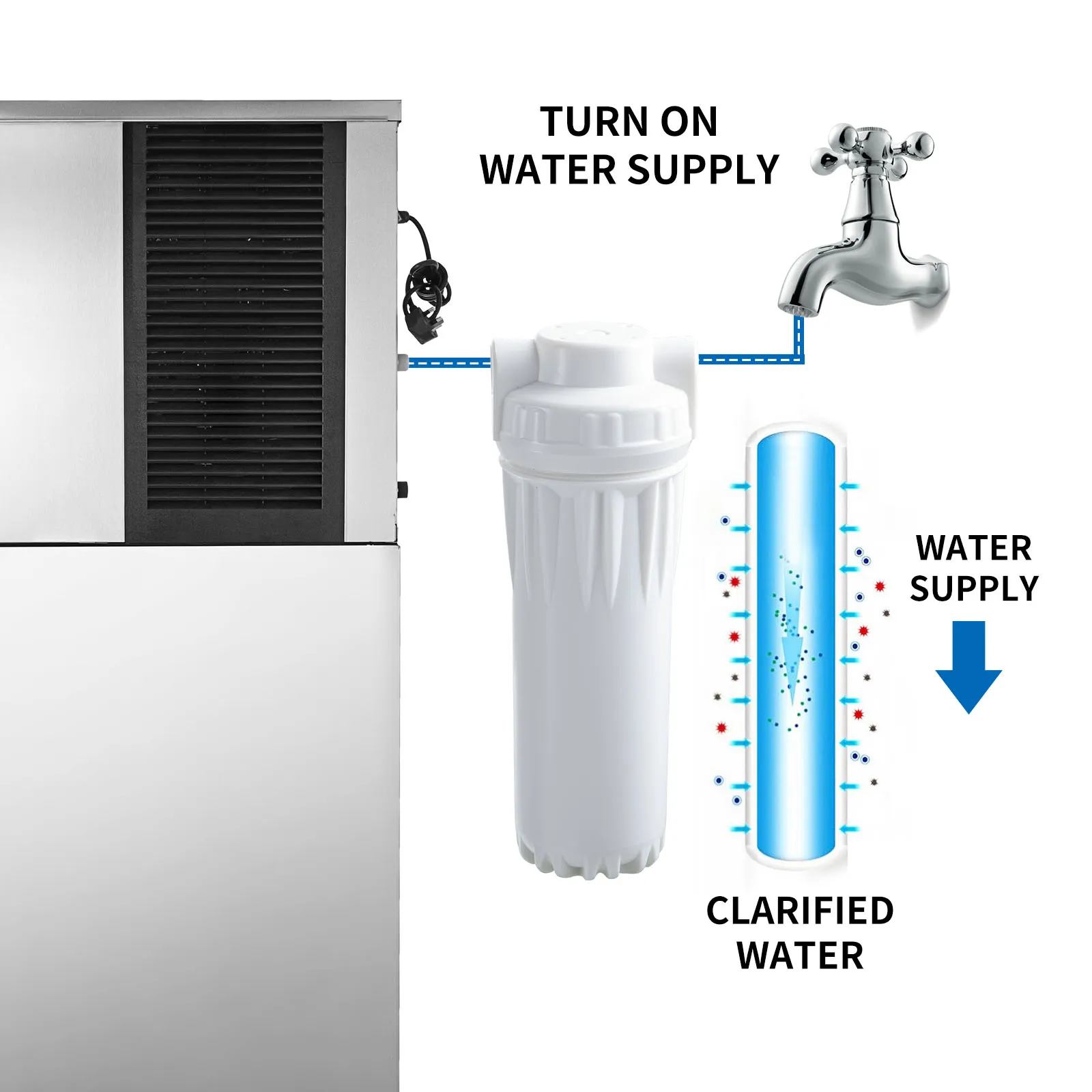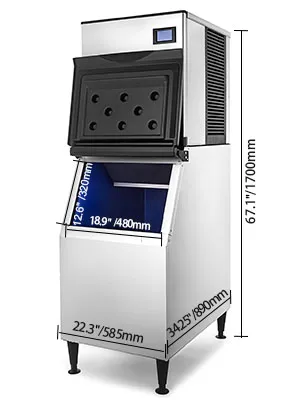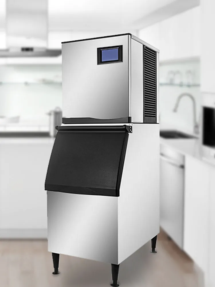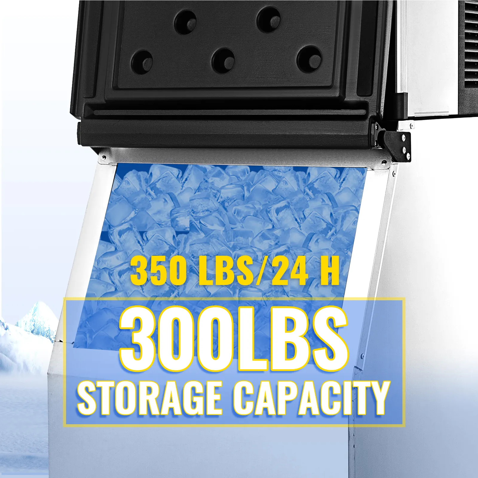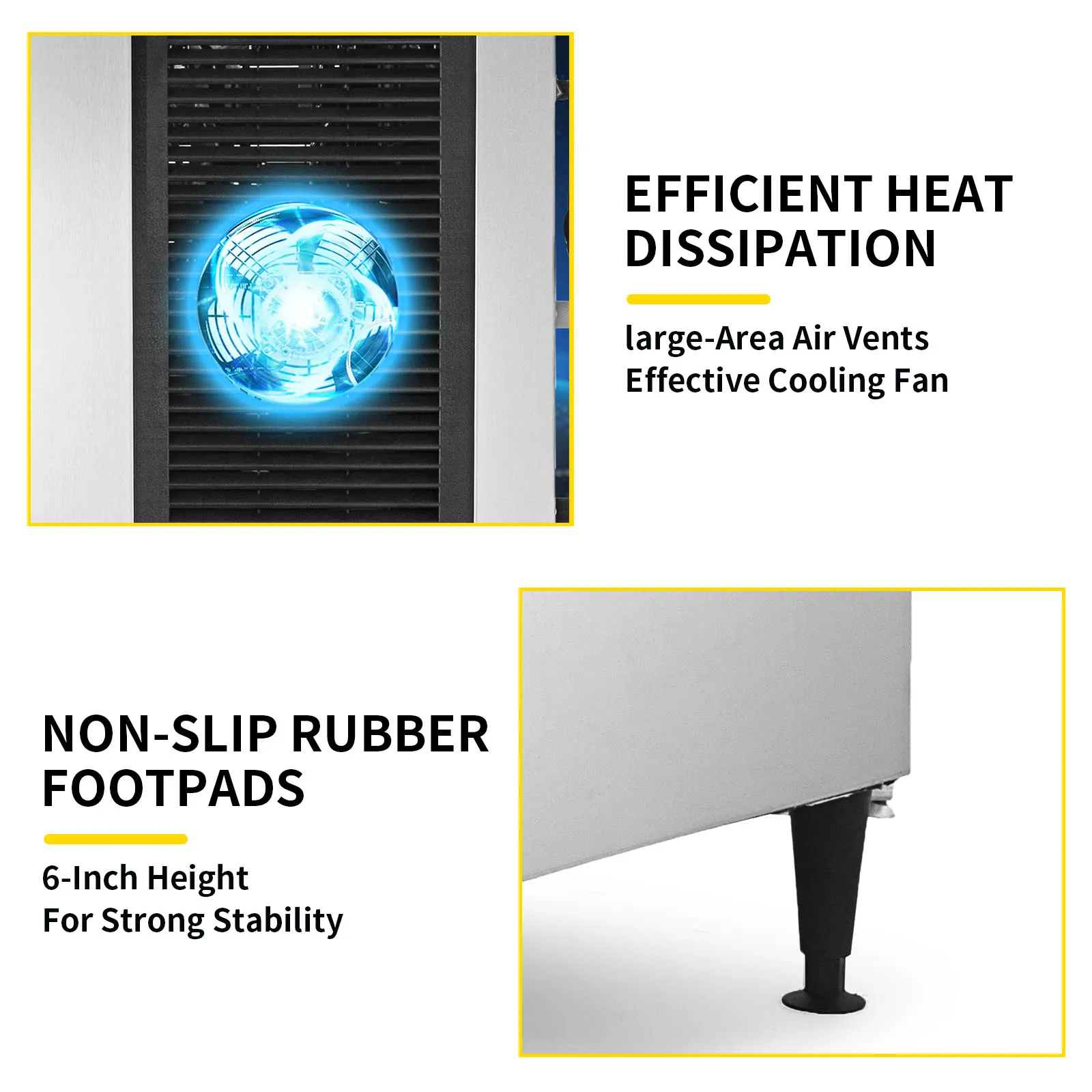 Diese Eismaschine aus Edelstahl 304 produziert pro 24 Stunden bis zu 158,8 kg exquisite kristallklare Eiswürfel mit einer großen Behälterkapazität von 140 kg. Es verfügt über ein temperaturgesteuertes Kühlsystem mit vollautomatischem Betrieb, Geruchsneutralität, Energieeinsparung und Umweltschutz. Perfekt für Catering-Unternehmen, Unternehmen, Bars usw.