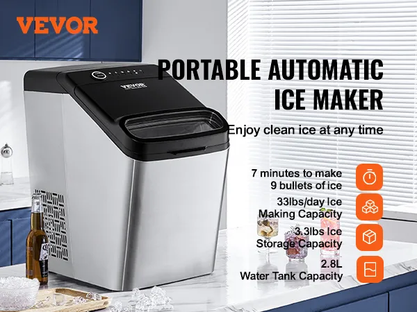 Tragbare & schnelle Eisherstellung: Dieser tragbare Eiswürfelbereiter kann 9 kugelförmige Eiswürfel in nur 7 Minuten herstellen. Er hat ein Fassungsvermögen von 3,3 lbs (1,5 kg) und kann innerhalb von 24 Stunden 33 lbs (15 kg) Eis produzieren, sodass Sie immer über einen Vorrat an Eiswürfeln verfügen.