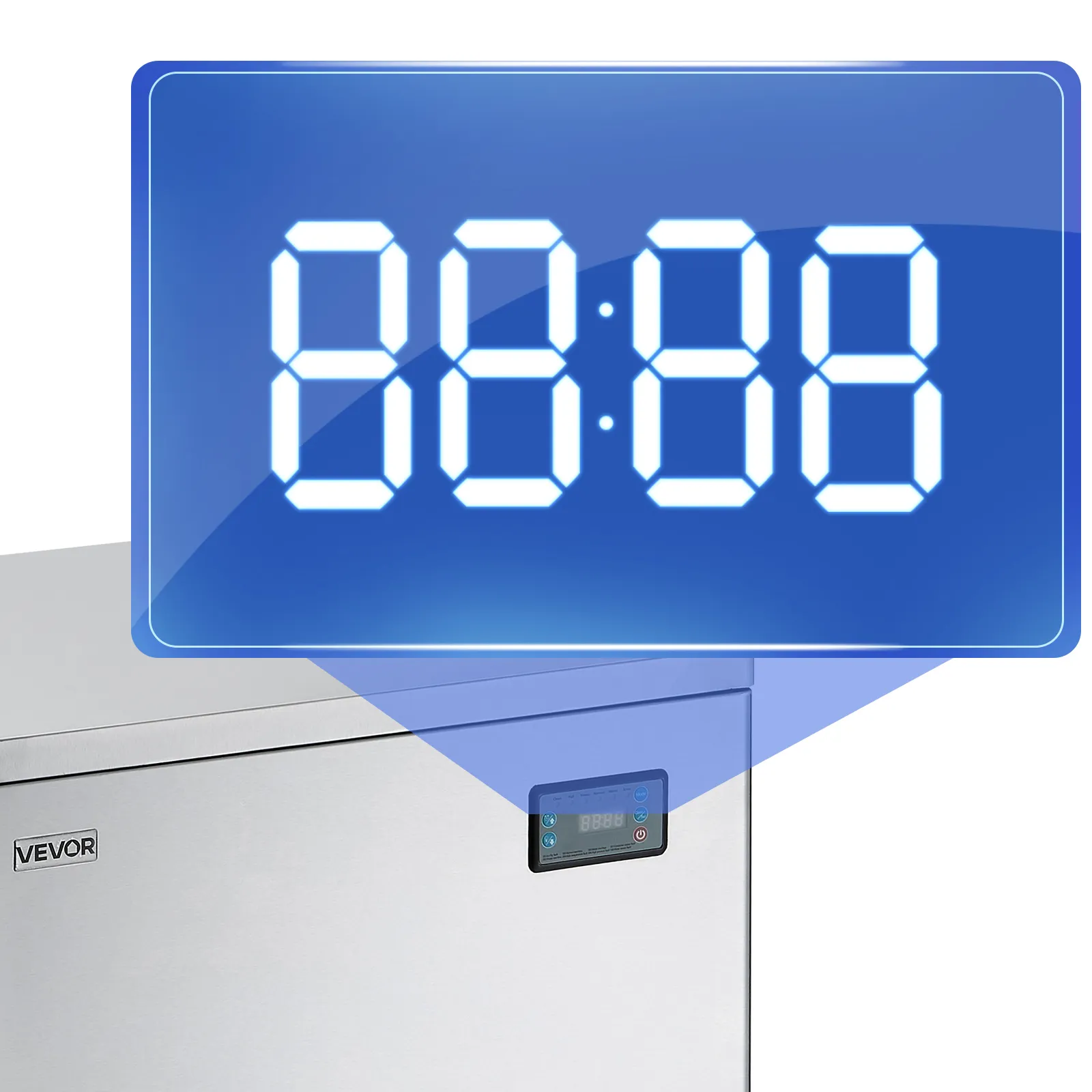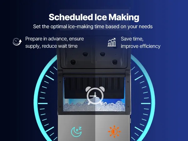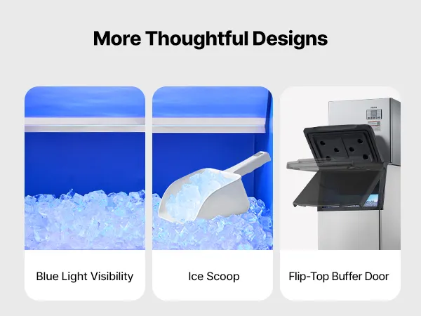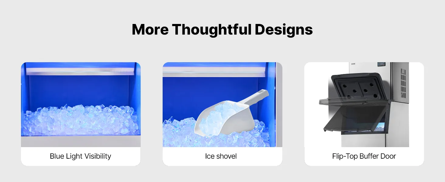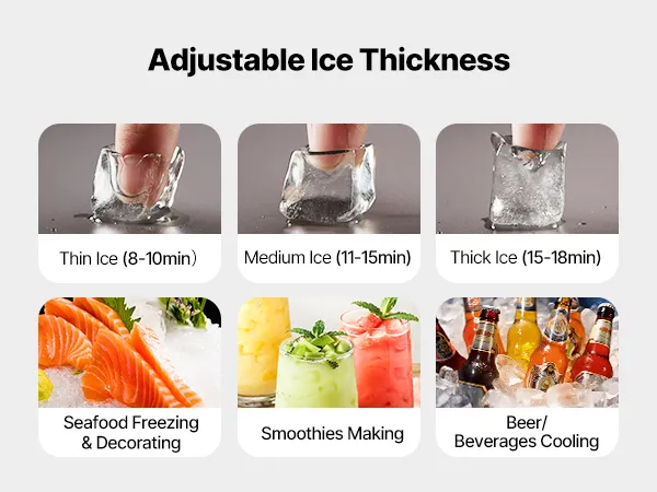 Schnelle Eisherstellung: Ausgestattet mit 182 Eiswürfelschalen ermöglicht die Eismaschine die Anpassung der Eisdicke durch Änderung der Eisherstellungszeit. Der leistungsstarke Kompressor kann Eis innerhalb von 12-15 Minuten produzieren