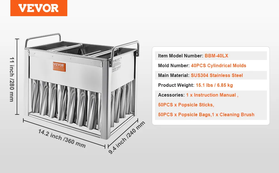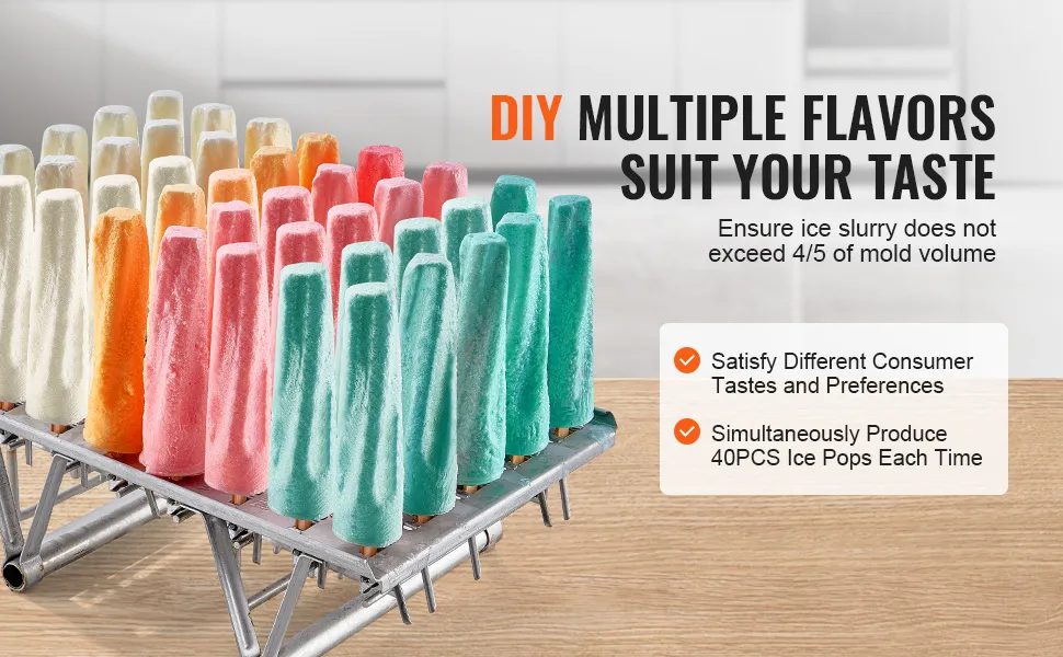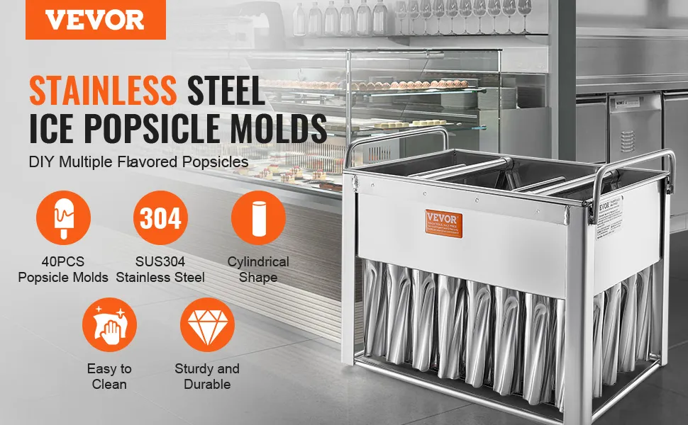 Die kommerziellen Eisformen von VEVOR sind ideal für anspruchsvolle Umgebungen. Diese Formen können bis zu 40 Eis am Stiel auf einmal produzieren. Das macht sie perfekt für Unternehmen wie Cafés, Restaurants und Eisdielen. Die große Produktionskapazität stellt sicher, dass Sie die Bedürfnisse Ihrer Kunden erfüllen. Unser zylindrisches Design ist vielseitig und kann für verschiedene Geschmacksrichtungen verwendet werden. So ist es einfach, Ihren Kunden verschiedene Optionen anzubieten. Sie haben für jedes Eis am Stiel eine gleichbleibende Qualität im Vergleich zur Größe. Dies hilft, den Standard ihres Produkts aufrechtzuerhalten.