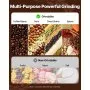 Verbessertes doppeltes Sicherheitsdesign: Die Weizenmühle stoppt automatisch, wenn der Deckel geöffnet wird, was die Sicherheit erhöht und den Benutzer vor Verletzungen schützt. Wenn die Getreidemühle überlastet ist, wird der Überlastungsschutz automatisch aktiviert, um den Betrieb zu steuern. Außerdem ist die Pulvermühle mit einem 0-5-Minuten-Timer einfach zu bedienen.