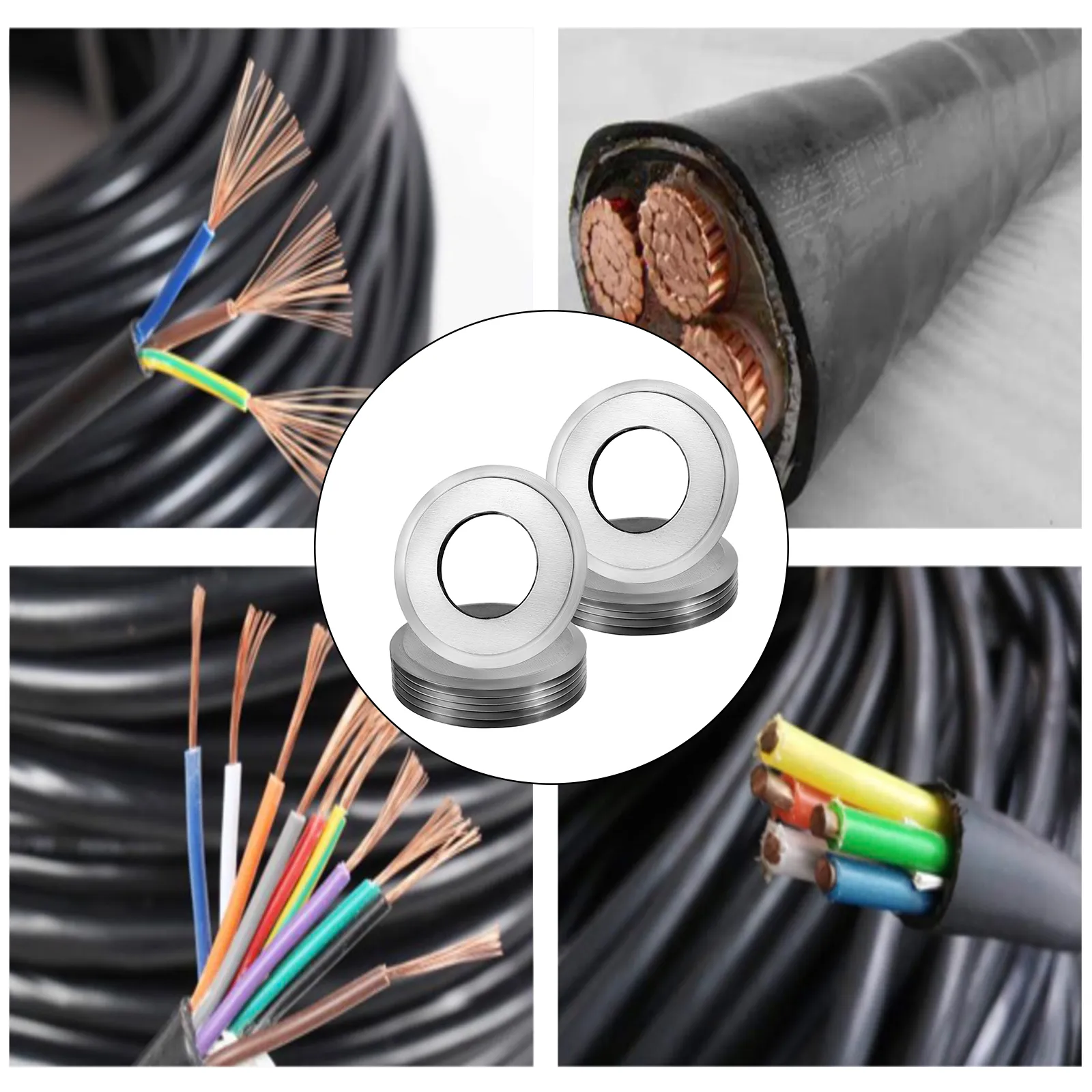Unsere kreisförmige Klinge eignet sich für kleine Abisoliermaschinen, die Elektronenstrahlen, Teflondraht, Silikondraht, isolierte Leitungen, Koaxialkabel, Kabelummantelungen und andere Materialien verarbeiten können.