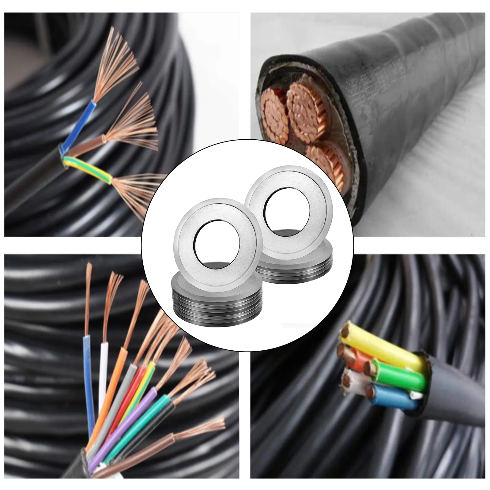 Unsere kreisförmige Klinge eignet sich für kleine Abisoliermaschinen, die Elektronenstrahlen, Teflondraht, Silikondraht, isolierte Leitungen, Koaxialkabel, Kabelummantelungen und andere Materialien verarbeiten können.