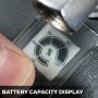 LCD, das die Akkukapazität anzeigt, wenn die Taste gedrückt wird, damit Sie Ihr Gerät rechtzeitig aufladen können.