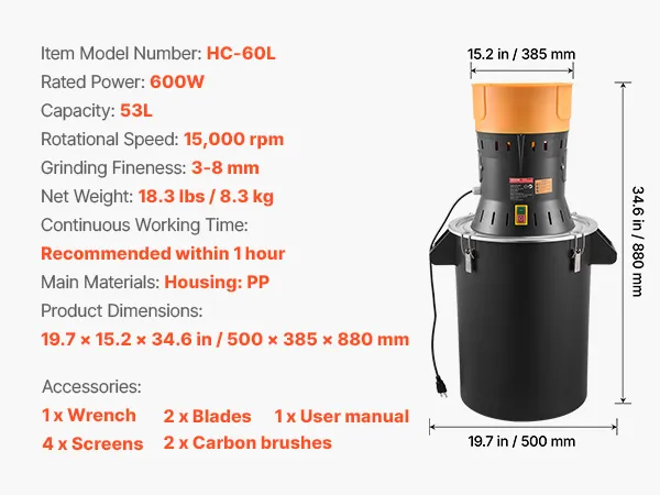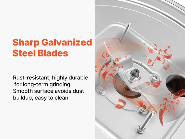 Leistungsstarkes Hochleistungsmahlen: Ein 600-W-Motor mit bis zu 15.000 U/min arbeitet mit einer 9,8-Zoll-Einfüllöffnung und scharfen, verzinkten Klingen zusammen und ermöglicht so ein effizientes, stabiles Mahlen mit geringen Vibrationen auch bei längerem Betrieb