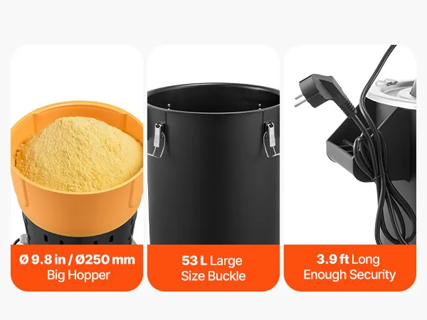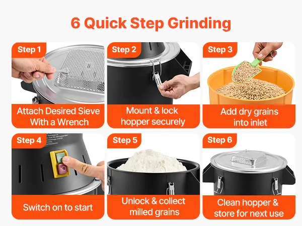 5 austauschbare Präzisionssiebe: Ausgestattet mit 3/4/5/6/8 mm Sieben ermöglicht diese Mühle eine flexible Steuerung des Mahlgrades und erfüllt somit die Mahlanforderungen für Futtermittel, Mehl oder Gewürzpulver