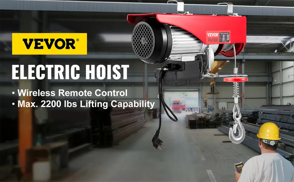 Dieser elektrische Hebezug mit einer Tragfähigkeit von 2200 lbs / 990 kg eignet sich hervorragend zum Heben von Motoren, Tischen, Holz und Werkstattausrüstung - ohne dass Sie auf Leitern steigen müssen. Mit der Fernbedienung können Sie aus sicherer Entfernung laden und absetzen. Dies ist eine ideale elektrische Winde für weitreichende Szenarien beim Laden schwerer Ausrüstung.