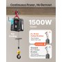 Die tragbare Seilwinde mit 1500-W-Motor hebt Lasten bis zu 500 kg (1100 Pfund) auf eine Höhe von 7,6 m (25 Fuß) mit einer Geschwindigkeit von bis zu 5 m/min. Die 2-in-1-Steuerung ermöglicht die Bedienung über Tasten am Griff oder eine 60 m lange Funkfernbedienung. Eine doppelte Sicherheitsbremse stoppt bei Stromausfall. Sie eignet sich zum Heben und Ziehen für Haus, Baustelle, Geschäft und Landwirtschaft.