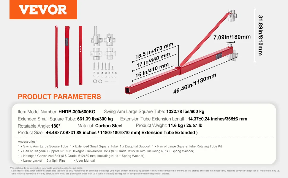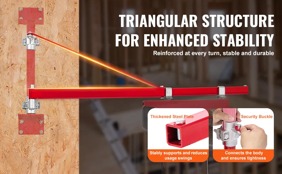 Material in Industriequalität: Unser Hebearm ist aus Kohlenstoffstahl in Industriequalität gefertigt und verfügt über eine stabile dreieckige Struktur und fortschrittliche Verstärkungstechnologie. Seine glatte Oberflächenbeschichtung widersteht Feuchtigkeit, während das Design aus verdickter Stahlplatte das Schwanken während des Gebrauchs minimiert. Sicherheitsriegel halten alle Komponenten sicher an ihrem Platz, damit Sie beruhigt sein können.