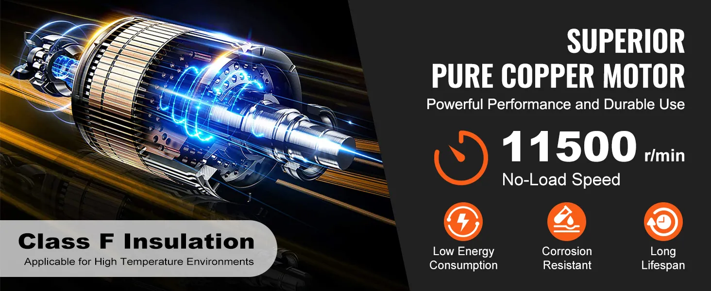 Leistungsstarker Motor: Spüren Sie die Kraft! Der Kupfermotor unseres elektrischen Kettenzuges ist auf Langlebigkeit ausgelegt und verfügt über eine F-Klasse-Isolierung für einen zuverlässigen Betrieb auch bei hohen Temperaturen bis zu 155 °C. Er dreht sich mit bis zu 11.500 U/min und ist bereit, jede schwere Hebeaufgabe mit Leichtigkeit zu bewältigen. Ob drinnen oder draußen, er ist für Sie da.