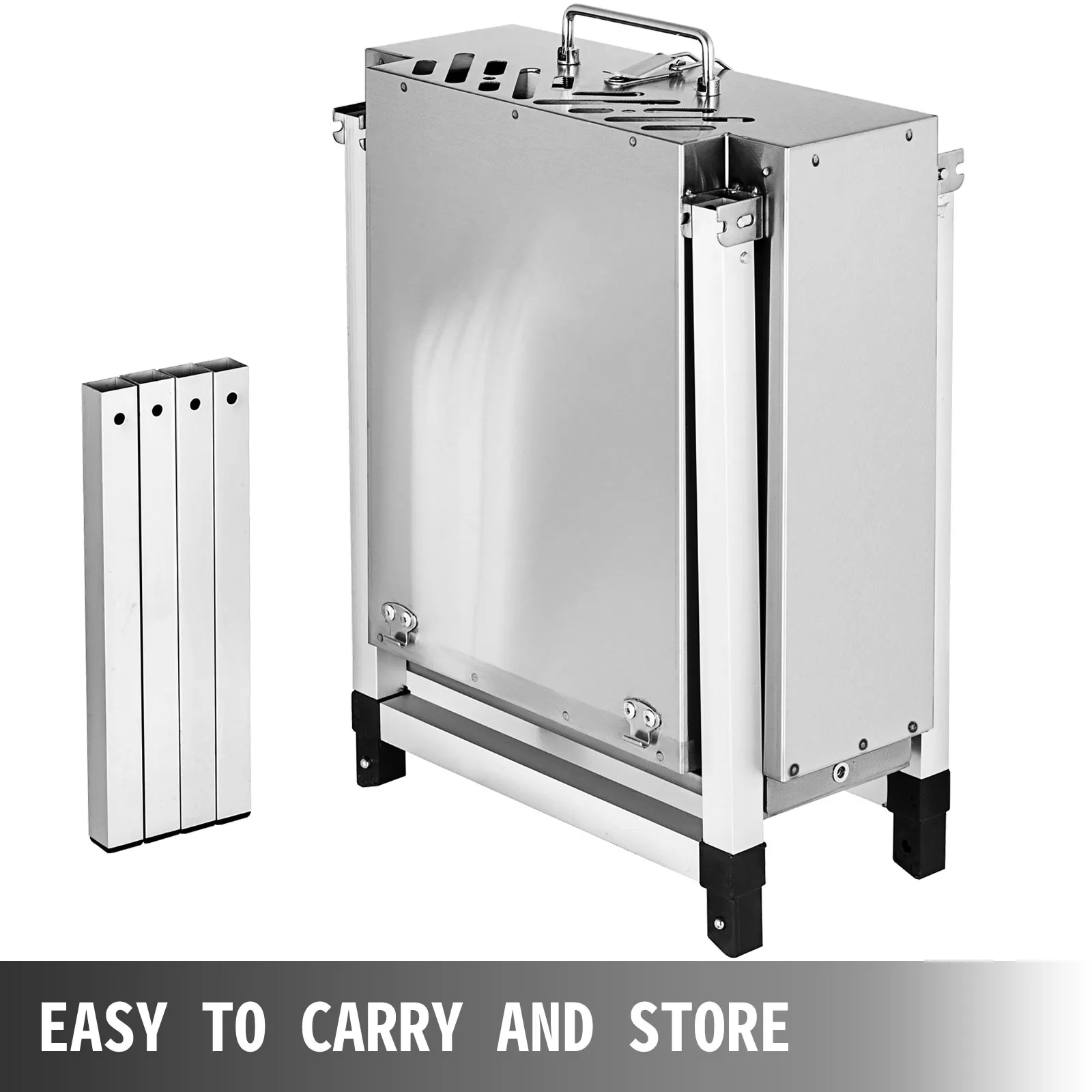 Dank seiner vier Verlängerungsbeine hat dieser tragbare Grill-Holzkohlegrill zwei unterschiedliche Höhen: 450 mm, 650 mm.