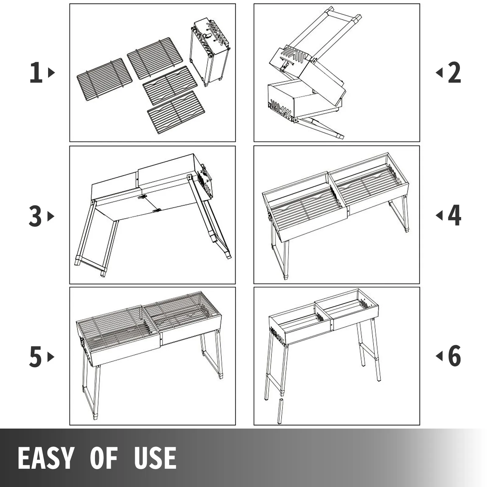 Wie die Bilder zeigen, dauert die Einrichtung unseres tragbaren Holzkohlegrills im Freien nur wenige Minuten. Eine gute Wahl für Familiengrillveranstaltungen und Partys im Freien.
