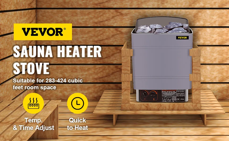 • Wenn Sie auf der Suche nach einem guten Saunaofen mit vielen beachtlichen Funktionen sind, ist unser Produkt absolut eine gute Wahl für Sie und Ihre Familien. Langanhaltende und schnelle Heizleistung bringt ein unvergessliches Saunaerlebnis. Außerdem ist dieses Gerät ein hervorragendes Geschenk für Menschen, die Ihnen wichtig sind. Zögern Sie also nicht, es zu kaufen. Hinweis: Dieser elektrische Saunaofen sollte mit vielen Saunasteinen (NICHT IM LIEFERUMFANG ENTHALTEN) verwendet werden. Es wird empfohlen, dieses Gerät zur Sicherheit an die Stromquelle anzuschließen.