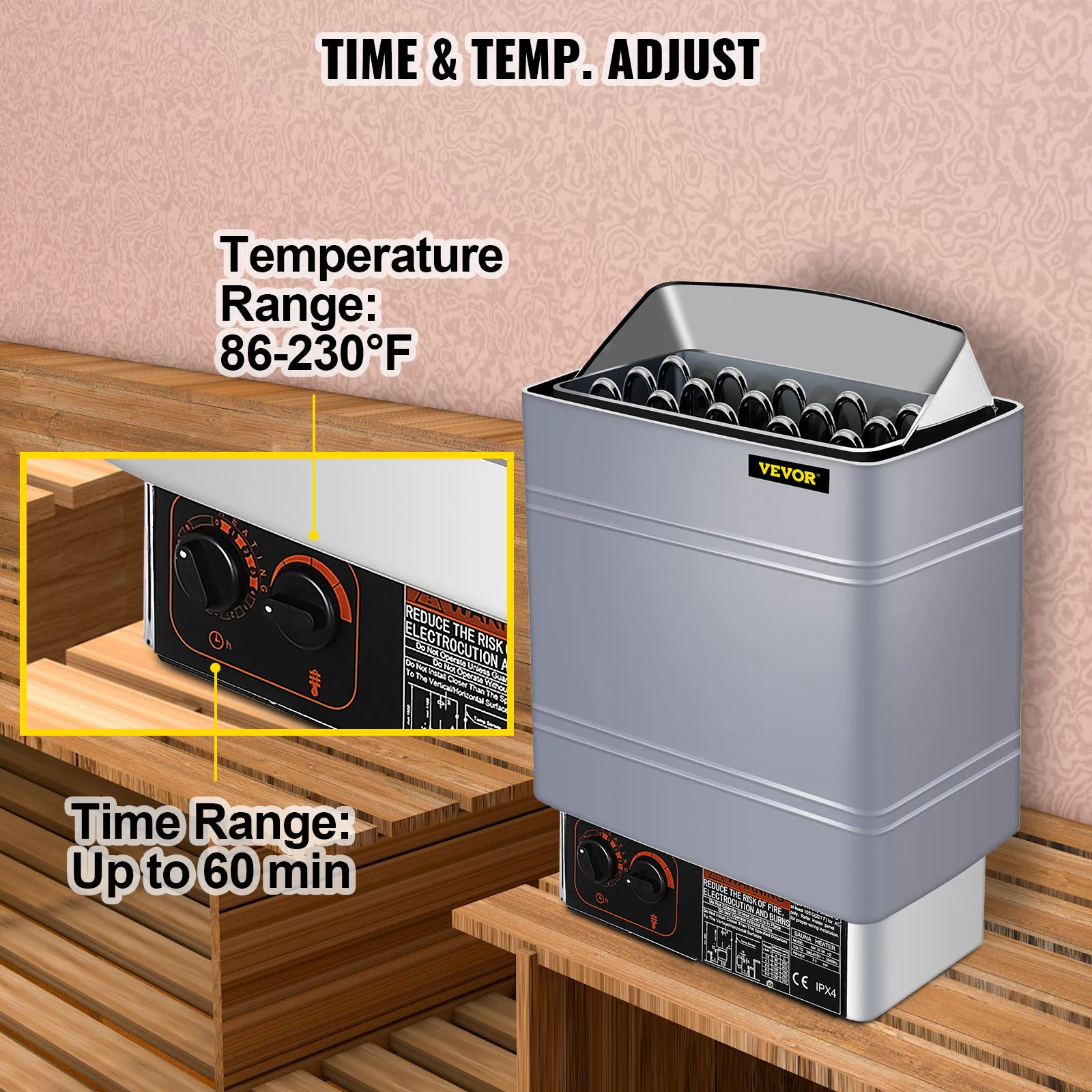 • Zeit & Temperatur einstellbar: Der Trockensaunaofen ist gut gebaut und verfügt über eine interne Steuerung mit praktischen Knöpfen für eine schnelle Einstellung, um einen komfortablen Saunaraum zu schaffen. Zeitbereich: 1 Stunde. Hinweis: Der Heizeffekt hängt von der tatsächlichen Größe des Raumes ab; es kann sein, dass er nicht die maximale Temperatur erreicht, wenn der Raum zu groß ist.