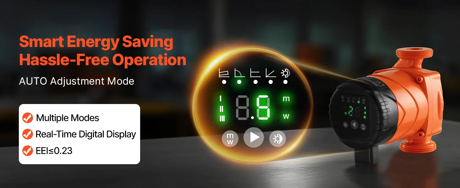 Ausgestattet mit einem leistungsstarken und dennoch verbrauchsarmen Permanentmagnetmotor liefert die hocheffiziente Umwälzpumpe eine starke Leistung bei stabilem Betrieb und langer Lebensdauer. Der automatische Nachtsparmodus reduziert die Arbeitsbelastung außerhalb der Spitzenzeiten und hilft so, Strom zu sparen und die Energiekosten zu senken.