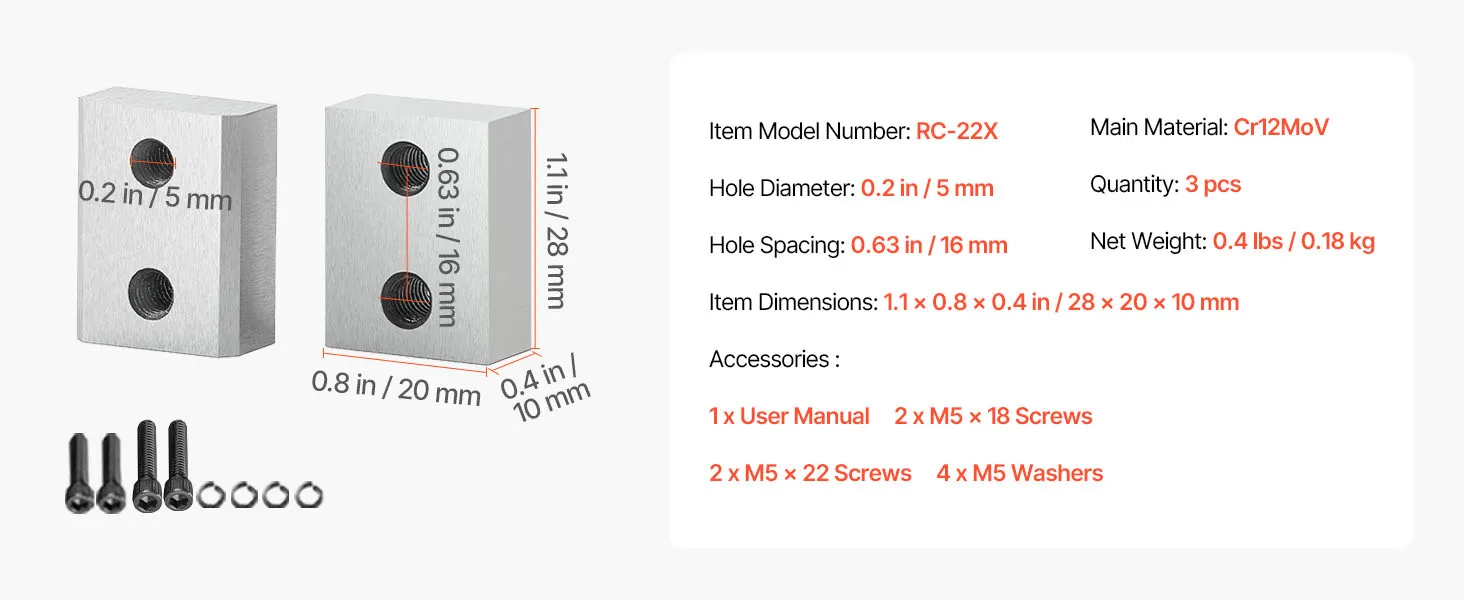VEVOR Bewehrungsschneider Klingen, 6 Stk. Ersatzbackenklingen für 22 mm #7 elektrischen Bolzenschneider, doppelseitig, CR12MOV-Stahl mit hoher Härte, mit Schrauben und Federscheibe, silber