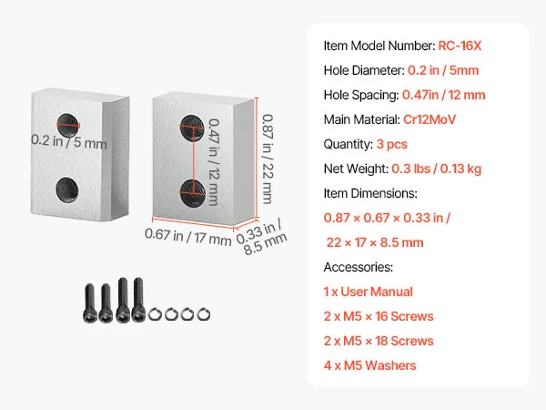 VEVOR Bewehrungsschneiderklingen, 6 Stk. Ersatzbackenklingen für 16 mm #5 elektrischen Bolzenschneider, doppelseitig, CR12MOV-Stahl mit hoher Härte, mit Schrauben und Federscheibe, silber