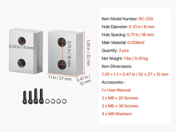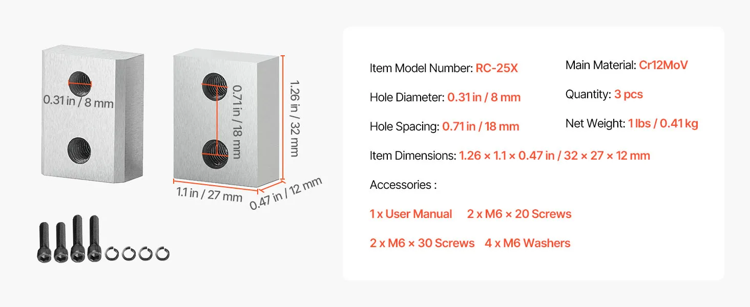 VEVOR Bewehrungsschneiderklingen, 6 Stk. Ersatzbackenklingen für 25 mm #8 elektrischen Bolzenschneider, doppelseitig, CR12MOV-Stahl mit hoher Härte, mit Schrauben und Federscheibe, silber