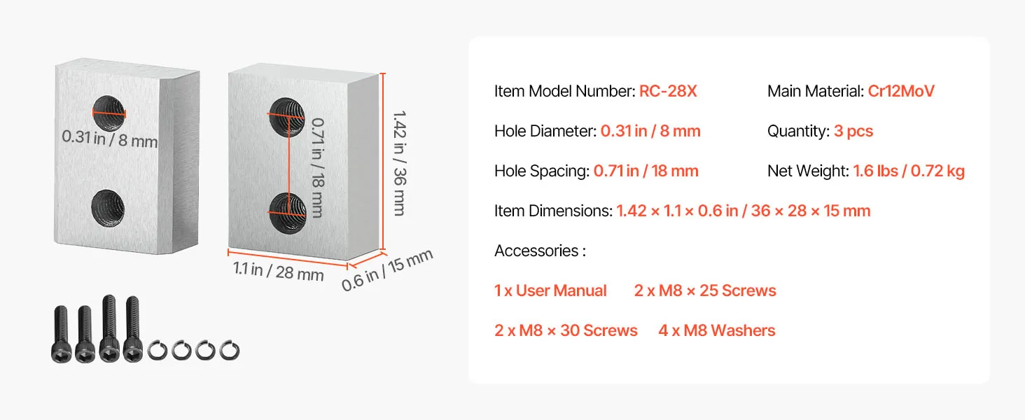 VEVOR Bewehrungsschneiderklingen, 6 Stk. Ersatzbackenklingen für 28 mm #9 elektrischen Bewehrungsschneider, doppelseitig, CR12MOV-Stahl mit hoher Härte, mit Schrauben und Federscheibe