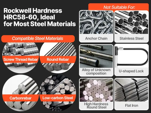 Hervorragende Leistung: Die Klingenkante ist superscharf und schneidet Bewehrungsstäbe in kürzester Zeit. Die CNC-Bearbeitung gewährleistet die Präzision der Klinge und hohe Genauigkeit. Steigen Sie noch heute auf VEVOR-Schneidklingen um