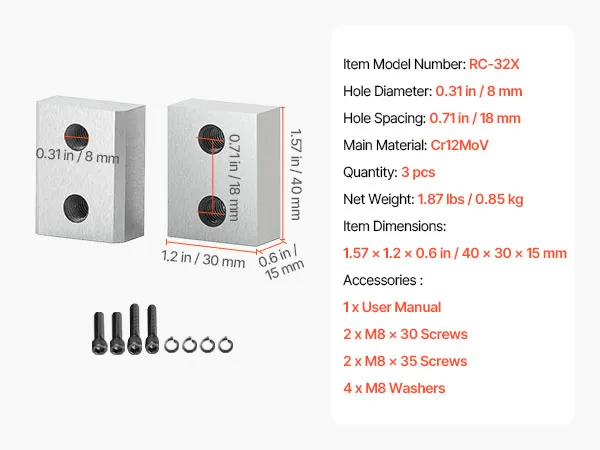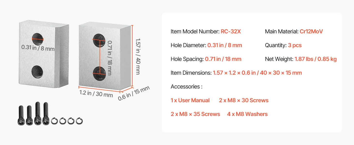 VEVOR Bewehrungsschneiderklingen, 6 Stk. Ersatzbackenklingen für 32 mm #10 elektrischen Bolzenschneider, doppelseitig, CR12MOV-Stahl mit hoher Härte, mit Schrauben und Federscheibe