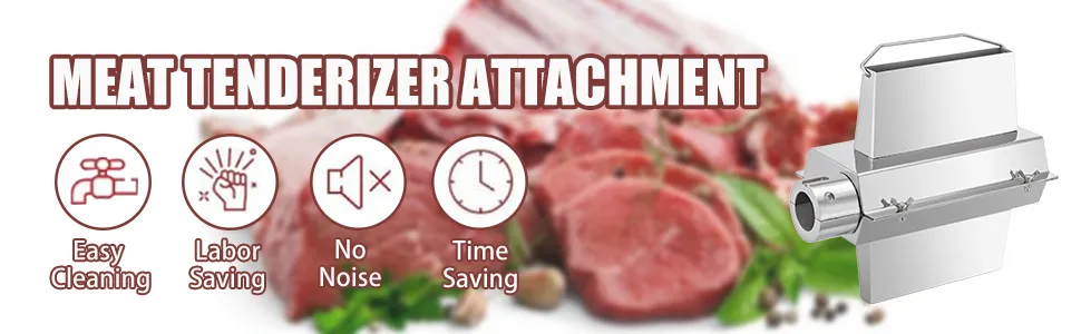 Dieser elektrische Maschinenaufsatz für Fleischklopfer besteht aus Edelstahl. Mit poliertem Edelstahlgehäuse für Langlebigkeit.