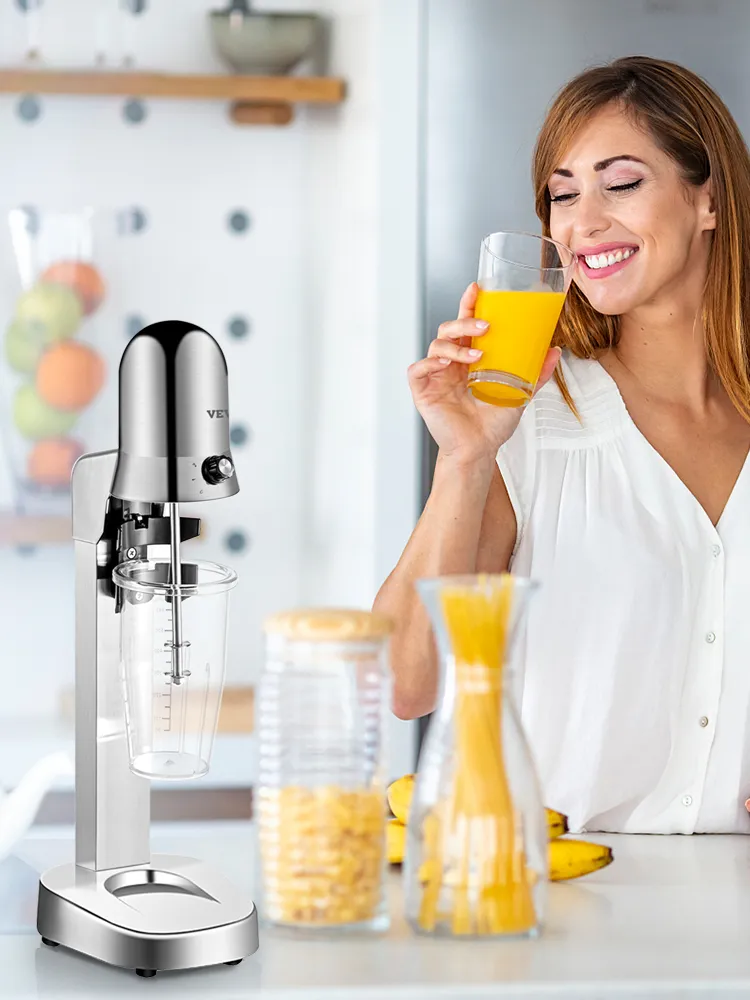 Unsere Milchshake-Maschine besteht aus strapazierfähigem Edelstahl und verfügt über eine Rührwelle in Lebensmittelqualität, damit Sie Ihre Arbeit effektiv und schnell erledigen können. Dieser Getränkemischer wird mit zwei großvolumigen 800-ml-Tassen geliefert, sodass Sie sofort mit dem Mixen von Getränken beginnen können. All die herausragenden Eigenschaften machen es für die Herstellung von Milchshakes, Fruchtsmoothies, Milchtee, Milchschaummischen usw. geeignet, die in Coffeeshops, Bars, Teeläden, Restaurants usw. weitverbreitet sind.