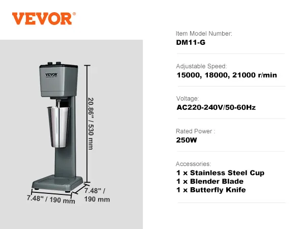 15000, 18000, 21000 U/min - wird die Maschine den verschiedenen Mischanforderungen von Milchtee bis zu grobkörniger Reispaste gerecht. Ausgestattet mit einem leistungsstarken Motor erleichtert der Milchshake-Mixer den Umgang mit schwierigeren Zutaten wie Nüsse, Obst, Gemüse oder Eiswürfel.