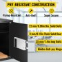 Die Konstruktion aus Karbonstahl mit schwarzem Finish ist verschleißfest und robust genug, um Aufhebungen zu verhindern. Die massiven Bolzen mit einem Durchmesser von 0,86 Zoll und einer Länge von 1,4 Zoll sowie die verdeckten Türscharniere stellen sicher, dass kein Dieb Ihre Wertsachen stehlen kann.