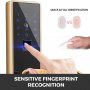 Hochempfindliche und stabile Technologie zur Identifizierung von Fingerabdrücken, schnell zu erkennen <0,5 s. Flache Fingerabdrücke von Kindern oder alten Personen akzeptiert. Große Kapazität zur Aufnahme von max. 160 Stück Fingerabdrücken im System.