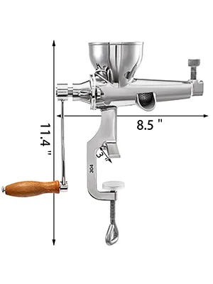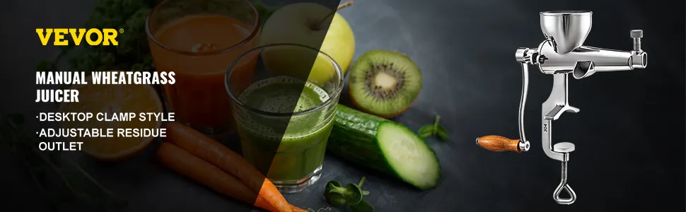 Unsere manuelle Weizengraspresse mit hoher Saftausbeute sorgt dafür, dass Sie das Beste aus Ihrem Gemüse und Obst herausholen. Dieser robuste manuelle Weizengras-Entsafter aus rostfreiem Stahl mit metallpolierter Oberfläche ist effizient und einfach zu bedienen. Die Montageklemme ist breit genug für Tische und Arbeitsplatten mit einer Tiefe von 2,2 Zoll (5,59 cm). Das einzigartige Design ermöglicht es, fast den gesamten Saft aus Gras, Obst, Gemüse usw. zu pressen.