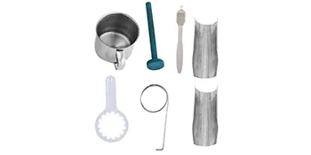 - Zubehör (PA-Wellenhülse, Dichtring, Reinigungsbürste, Schraubenschlüssel, Haken)