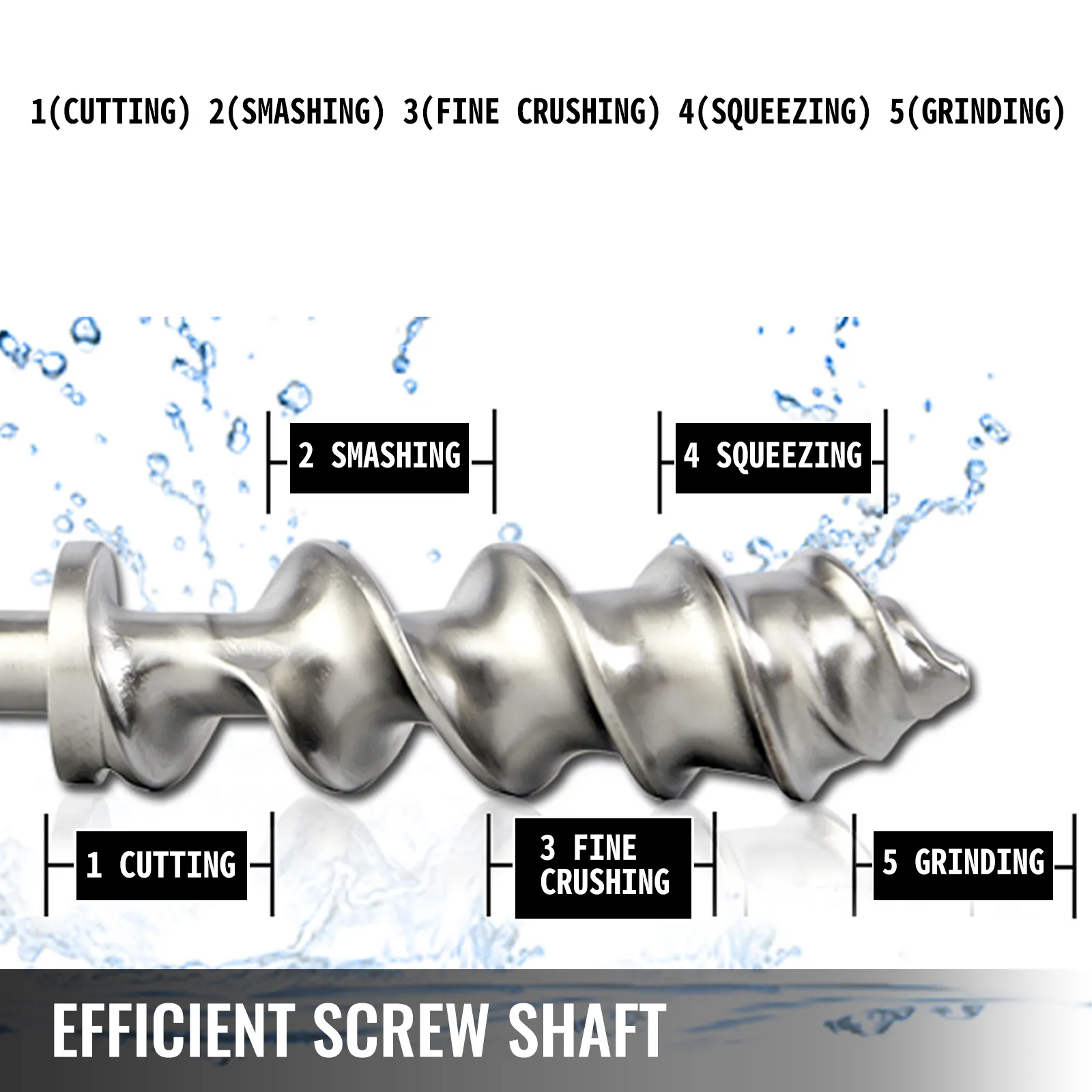 Ein extra langer Schraubenschaft mit fünfstufiger progressiver Extrusionstechnologie wird verwendet, um die Zutaten zu pressen und die Ernährung gründlich zu erhalten.