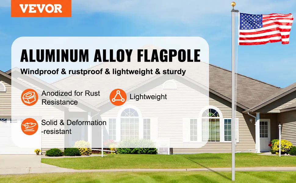 Unser Fahnenmast-Set aus Aluminiumlegierung ist nicht nur robust und langlebig, sondern auch leicht und flexibel. Das leichte Design ermöglicht eine einfache Installation, während die eloxierte Oxidation für Rostbeständigkeit und Haltbarkeit sorgt.