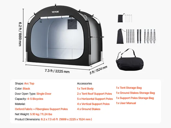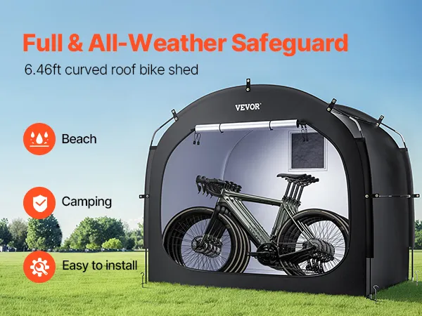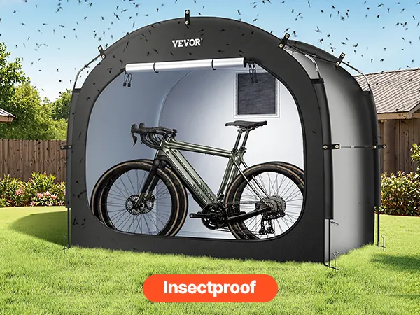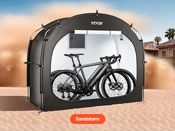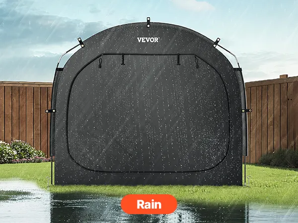 Unser Fahrradschuppen verfügt über eine zweischichtige wasserdichte Beschichtung und ein silberbeschichtetes 210D Oxford-Gewebe für Langlebigkeit. Der robuste Fiberglasrahmen sorgt für Stabilität, während sein leichtes Design einen schnellen Aufbau ermöglicht. Belüftungsfenster halten den Innenraum trocken und frisch.