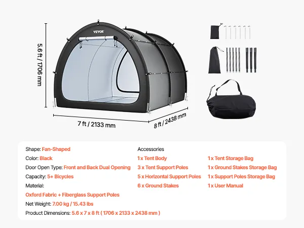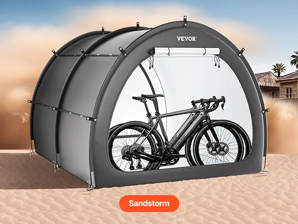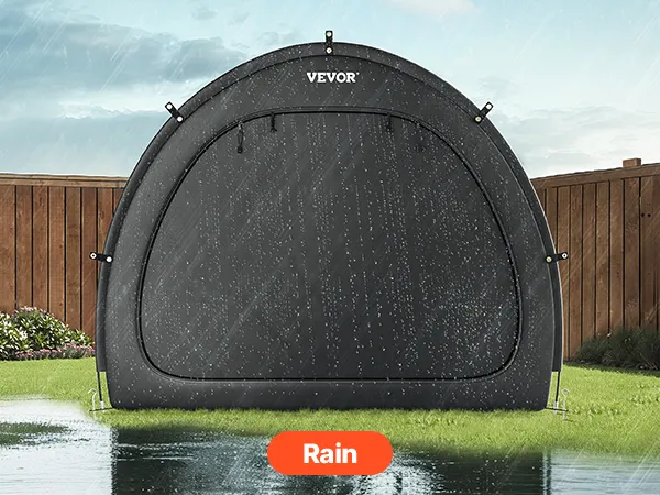 Unser Fahrradschuppen verfügt über eine zweischichtige wasserdichte Beschichtung und ein silberbeschichtetes 210D Oxford-Gewebe für Langlebigkeit. Der robuste Fiberglasrahmen sorgt für Stabilität, während sein leichtes Design einen schnellen Aufbau ermöglicht. Belüftungsfenster halten den Innenraum trocken und frisch.