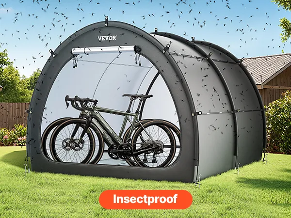 Robust & langlebig: Mit einem verstärkten Glasfaserrahmen und einer dreieckigen Mehrpunkt-Stabilisierungsstruktur gebaut, bleibt unser Fahrradschuppen stabil und verformungsfrei. Die Glasfaserstangen mit einem Innendurchmesser von 9,5 mm bieten eine gute Korrosionsbeständigkeit und Isolierung, sodass es ideal für den langfristigen Einsatz im Freien ist.