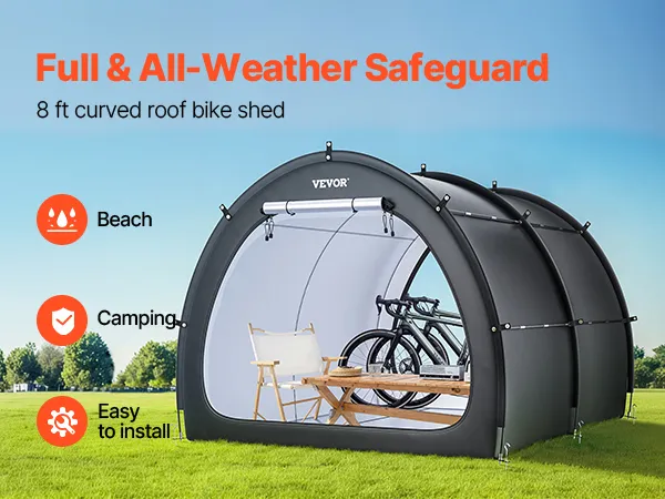 Umfassende Abdeckung: Unser Fahrradschuppen verfügt über eine professionelle doppelte wasserdichte Beschichtung und silberbeschichtetes 210D Oxford-Gewebe. Die äußere Schicht aus silberbeschichtetem 210D Oxford-Gewebe kombiniert mit einer wasserdichten PU4000-Beschichtung, einem vollflächigen wasserdichten Klebeband und einem gewölbten Design verhindert Wasseransammlungen und hält das Innere trocken. Sonnenschutzmaterial verlängert die Lebensdauer zusätzlich.
