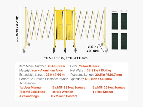 • Absperrbereiche absperren: Mit den doppelt ausziehbaren Scherengittern von VEVOR können Sie schnell Sicherheitsbarrieren errichten, um Gefahren abzusperren, Menschenmengen zu lenken und Personen in der Nähe zu schützen. Ausziehbare Länge: 7,66 m (25 Fuß), Eingefahrene Länge: 520,7 mm (20,5 Zoll), Höhe: 1020 mm (40 Zoll)