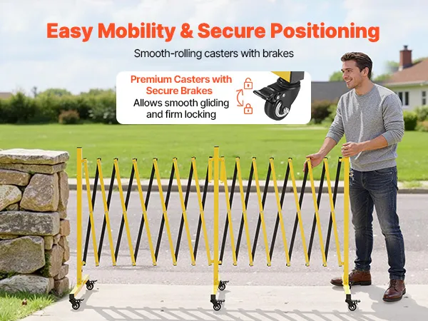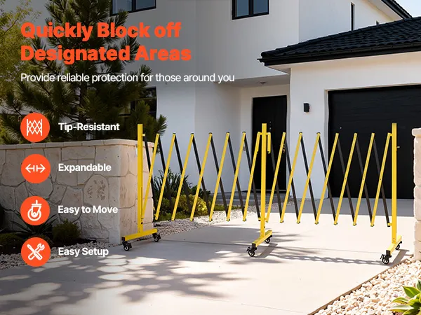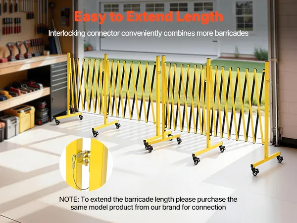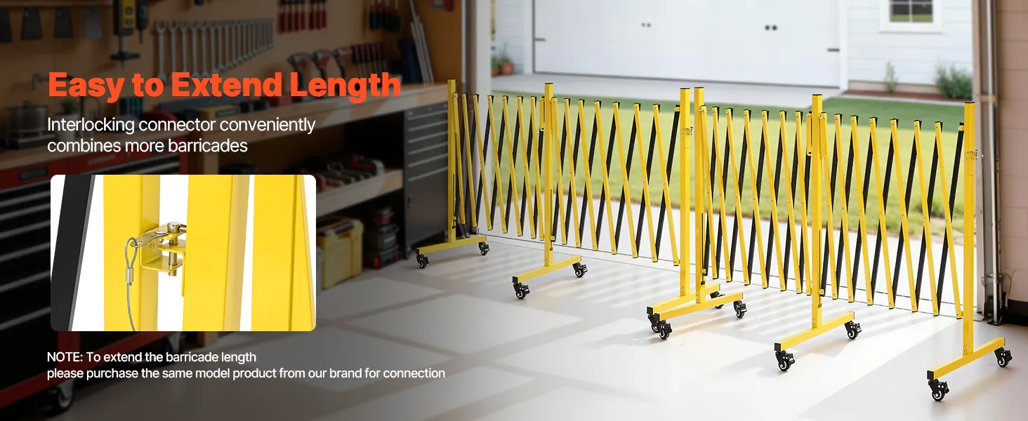 Diese erweiterbare, faltbare Sicherheitsbarriere ist mit einem Verriegelungsmechanismus ausgestattet und ermöglicht es Ihnen, weitere Absperrungen bequem miteinander zu verbinden, um den Abdeckungsbereich zu vergrößern.