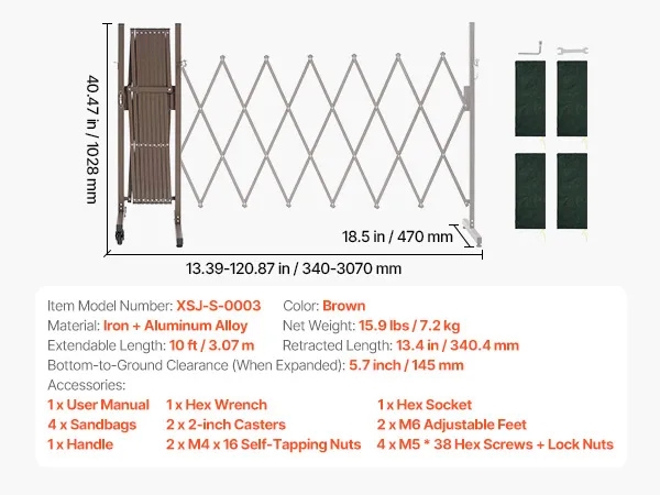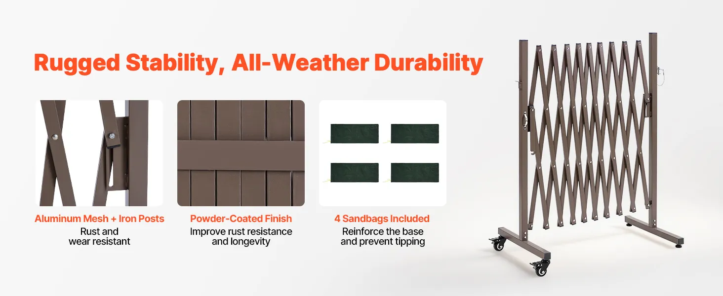 • Robust und langlebig: Unseres ausziehbare Scherengitter besteht aus Aluminiumgewebe und Eisenpfosten mit einer pulverbeschichteten Oberfläche für lange Haltbarkeit. Vier Sandsäcke sind im Lieferumfang enthalten, um die Stabilität zu erhöhen und ein Umkippen bei Wind und Regen zu verhindern