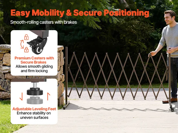 • Leichtgängige Mobilität & sichere Arretierung: Ausgestattet mit zwei feststellbaren Rollen, lässt sich dieses faltbare Absperrgitter mühelos über verschiedene Oberflächen bewegen und sicher für einen stabilen Stand arretieren. Zwei verstellbare Nivellierfüße sorgen für zusätzliche Stabilität auf unebenen Flächen