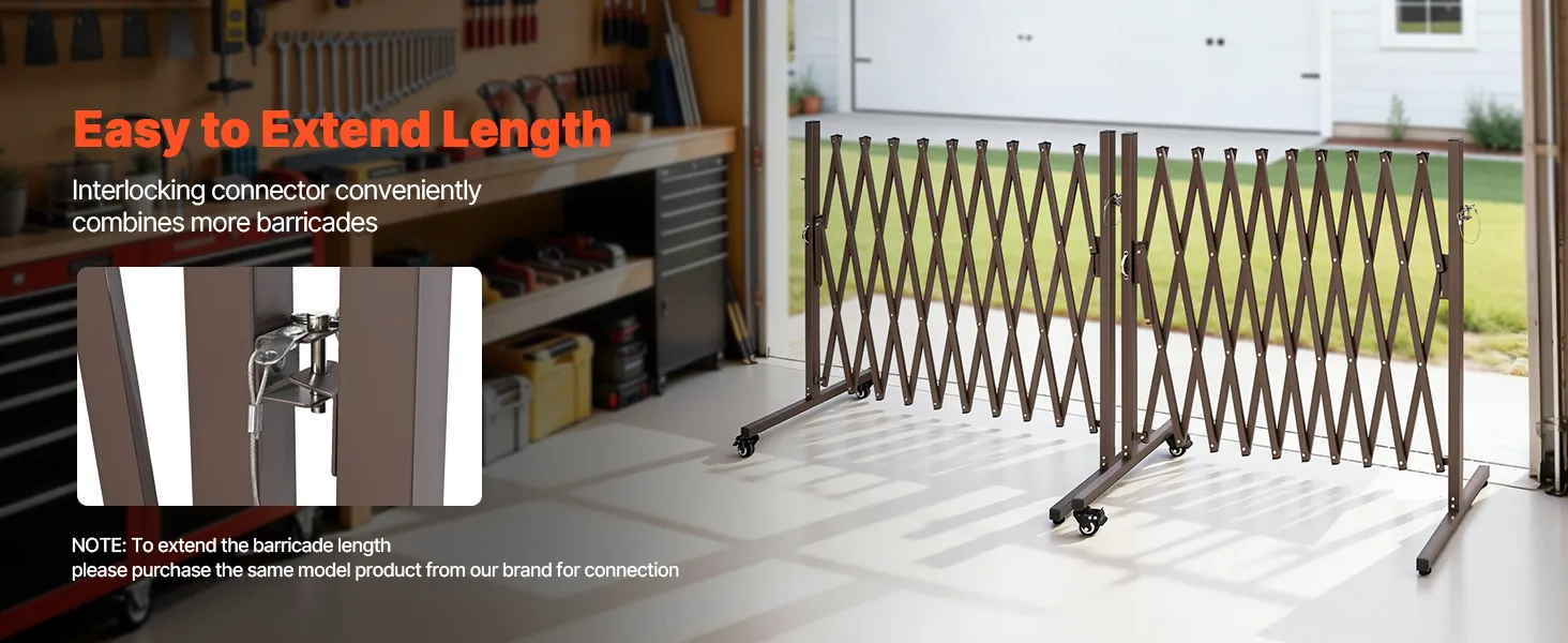 Diese erweiterbare Sicherheitsbarriere ist mit einem Verriegelungsmechanismus ausgestattet und ermöglicht es Ihnen, zwei oder mehr Absperrungen bequem miteinander zu verbinden, um den Abdeckungsbereich zu vergrößern.