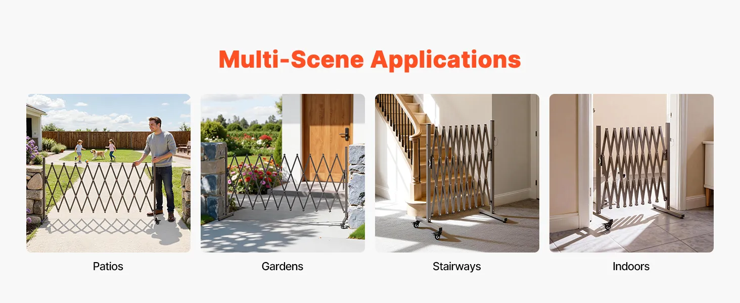 Von Terrassen und Gärten bis hin zu Treppenhäusern – diese faltbare, mobile Absperrung passt sich problemlos an verschiedene Umgebungen an, in denen temporäre Barrieren benötigt werden.