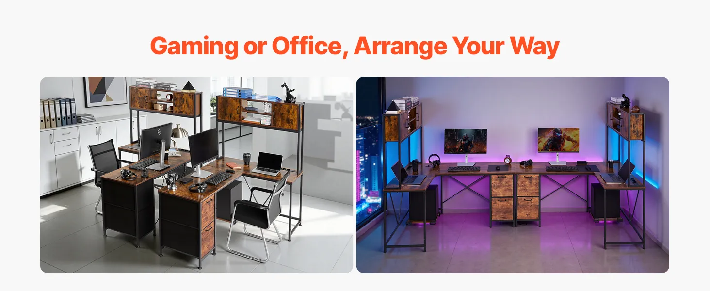 Wendbarer L-förmiger Schreibtisch: Maximieren Sie Ihren Eckplatz mit dem wendbaren L-förmigen Gaming-Tisch von VEVOR. Dank 4 Montageoptionen passt er sich mühelos verschiedenen Raumaufteilungen an und eignet sich perfekt als Gaming-Schreibtisch, Computertisch oder Homeoffice-Arbeitsplatz