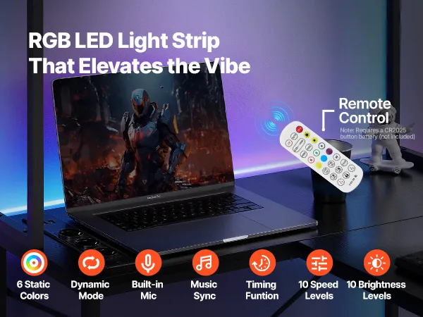 Farbiger RGB-Lichtstreifen: Erschaffe mit dem integrierten RGB-Lichtstreifen eine immersive Gaming-Atmosphäre. Mit 6 statischen Farben, einstellbarer Helligkeit und Geschwindigkeit sowie musiksynchronisierten Effekten sorgt er für ein lebendiges, stimmungsvolles und angenehmes Lichterlebnis