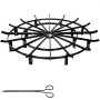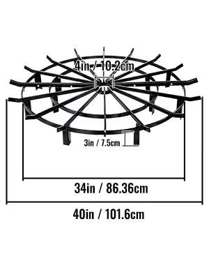 Der Gesamtdurchmesser dieses Feuerrosts beträgt 40 Zoll (ca. 1 m). Speichen und Beine bestehen aus einer robusten 3/4-Zoll-Stahlstange, der Stützring aus einer dicken Stahlstange.