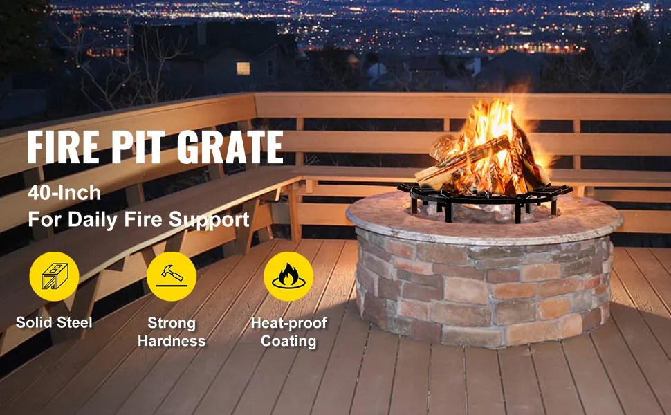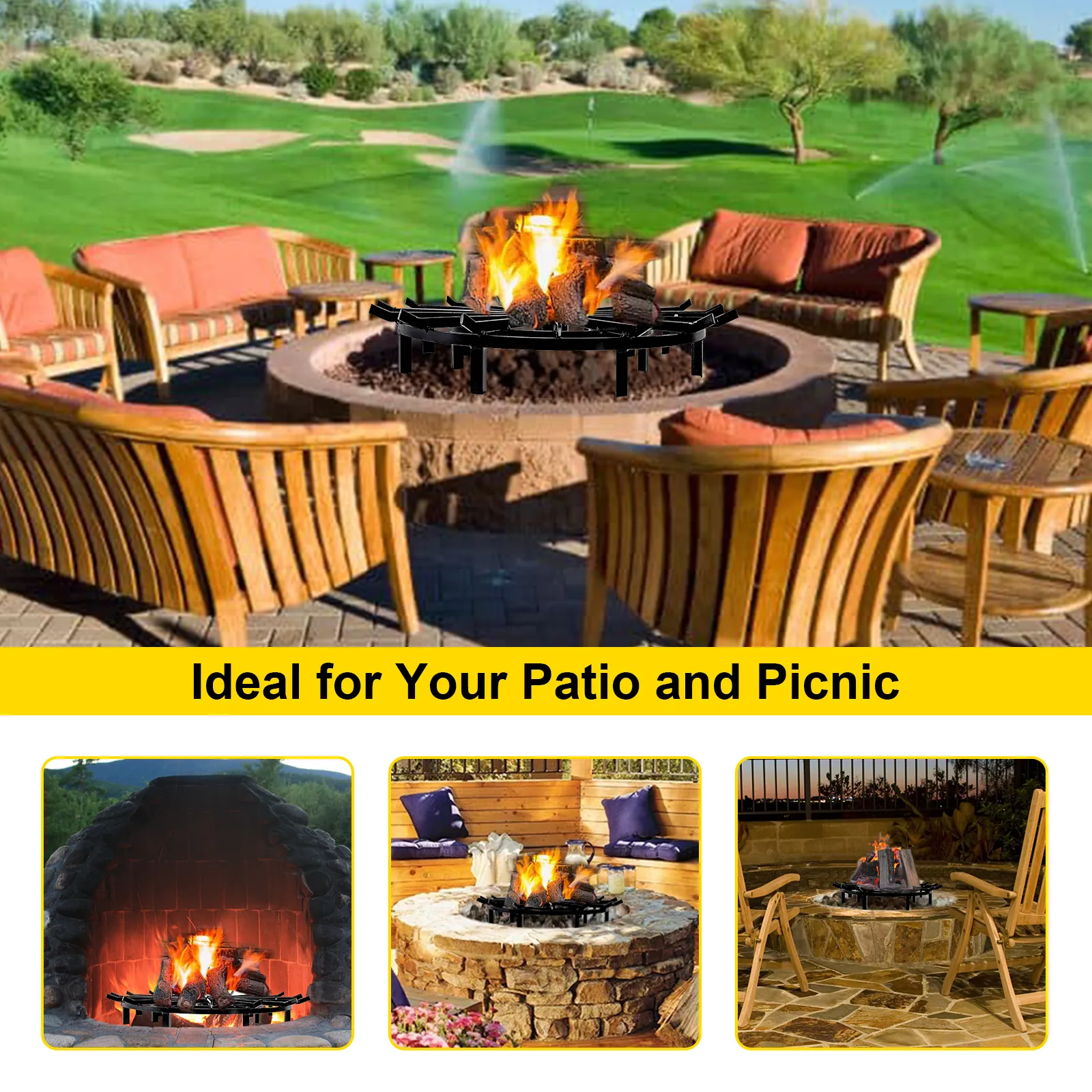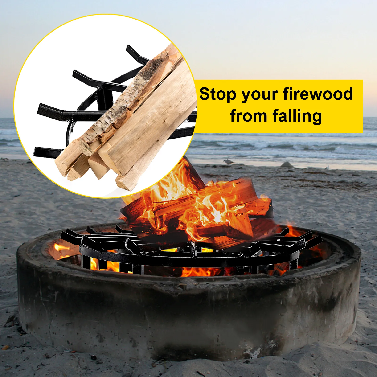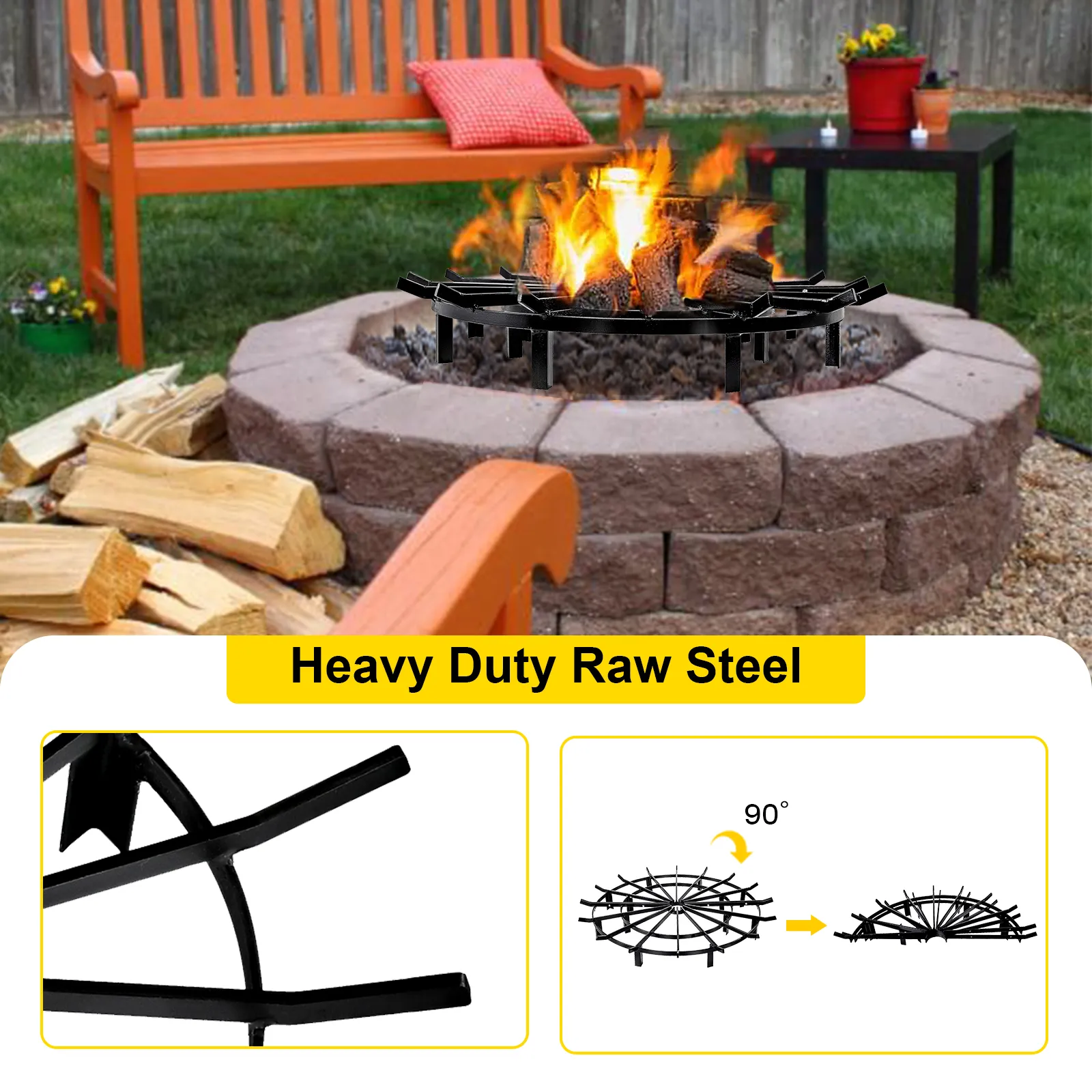 Sie können unseren Stahl-Feuergrubenrost für Ihr Hinterhof-Feuer oder Lagerfeuer verwenden. Unser Stahl-Feuergrubenrost ist aus hochbelastbaren dicken Vier-Kant-Stahlstäben und einem Stützring für zusätzliche Haltbarkeit gefertigt. Das innovative, erhöhte Design hebt Brennholz vom Boden ab, um die Luftzufuhr zum Feuer zu verbessern, während die gebogenen Kanten dazu beitragen, die Stämme stabil auf dem Holzbett zu halten. Es ist langlebig und widerstandsfähig gegen die härtesten Bedingungen.